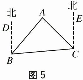 7. 如图 5,A 处在 B 处的北偏东 40°方向,C 处在 B 处的北偏东 85°方向,A 处在 C 处的北偏西 45°方向,则∠ACB 的度数是(
