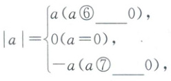 (2) 几何意义:从数轴上看,一个数的绝对值就是表示这个数的点与原点的距离;离原点越远的点所表示的数的绝对值越⑧。