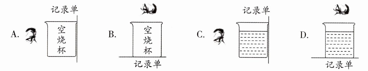 2. 按照如下方法观察记录单上的文字,其中能将记录单上的文字图像放大的方法是( )。
