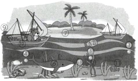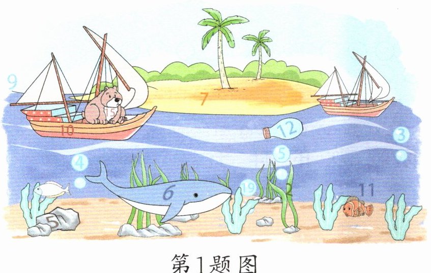 1. 你已经认识了哪些数?请你在下面的图片里圈出来。看谁找得多。
