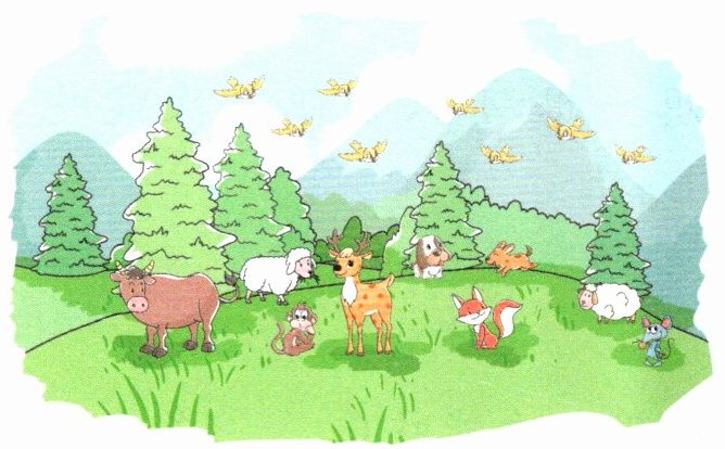 地上有(7 8 9)只动物,天上有(6 7 8)只小鸟。
