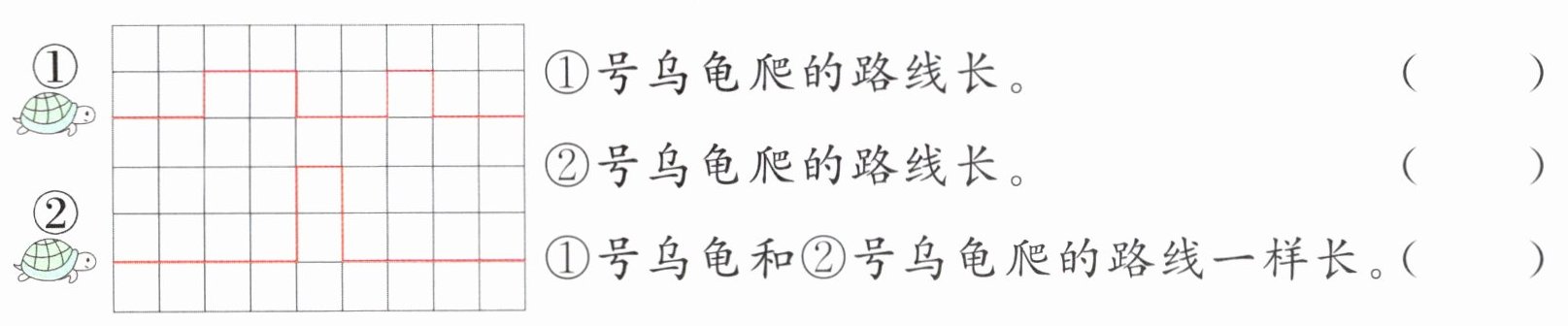 4. 哪只乌龟爬的路线长?在正确答案的括号里画“√”。 视频讲解