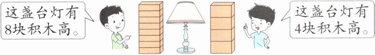 1. 亮亮和弟弟用积木测量家里的台灯有多高。