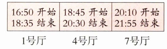 5. 李叔叔下午5:30下班,看几号厅放映的电影最合适?请说明理由。