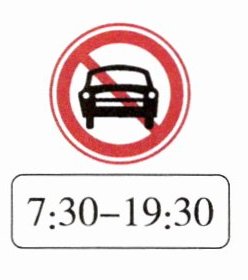 3. 右图是一个标志牌。从这个标志牌上可以知道该路段从上午( )时( )分到晚上( )时( )分禁止机动车通行。李叔叔晚上7时35分开机动车到达该路段,他( )通行(填“能”或“不能”)。