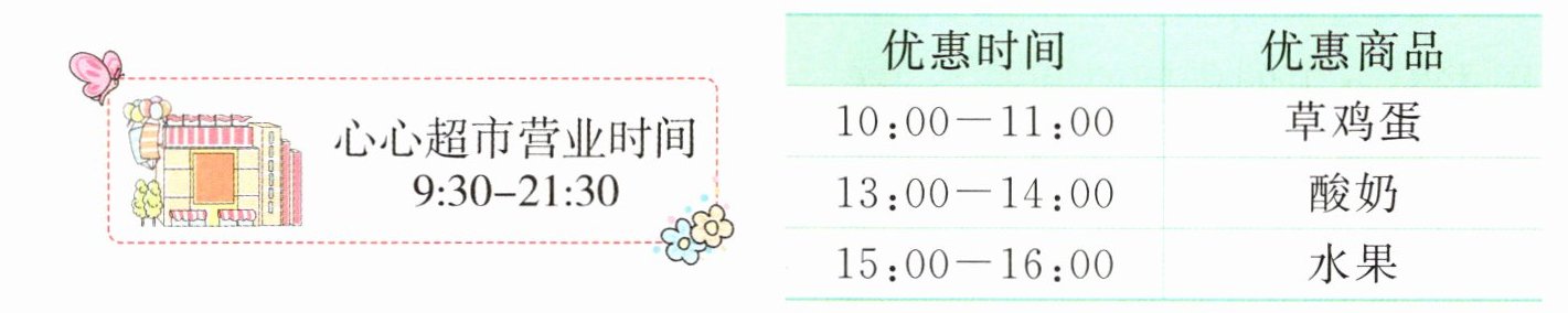 - (1)心心超市的营业时间是从上午( )到晚上( )。