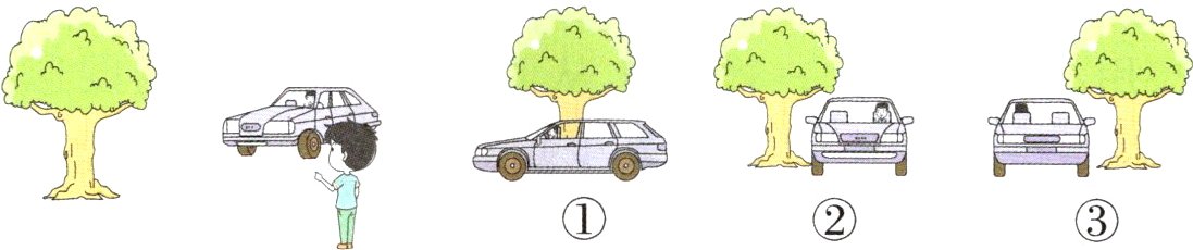 4. 一辆汽车从亮亮面前经过,亮亮看到的顺序是( )。(填序号)