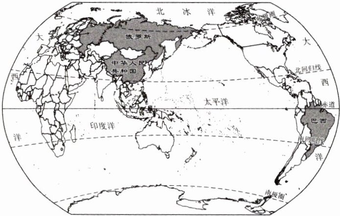“我把花的芬芳,种 960 万平方……我用四方土壤,装满心愿的箩筐。”春晚节目《花开种花家》的歌词通过种植的各种花卉,反映出我国疆域辽阔,位置优越。读世界上三个国家位置图,完成 1~2 题。