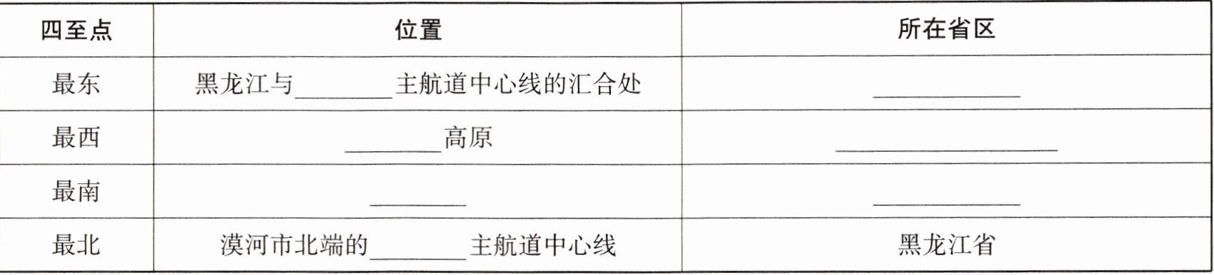 | 最东 | 黑龙江与乌苏里主航道中心线的汇合处 | 黑龙江省 |
