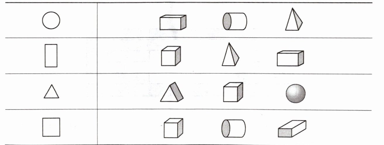 二、用右边的哪个物体可以画出左边的图形?请把它圈起来。