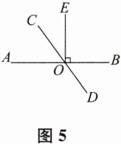 8. 如图5,直线AB,CD相交于点O,$ OE\perp AB $于点O,且$ \angle DOE=4\angle COE $,求$ \angle AOD $的度数.