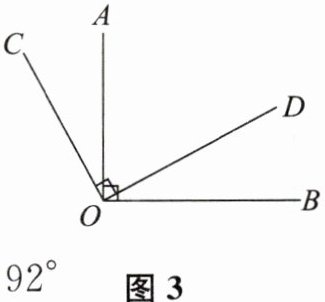 4. 如图3,已知$ AO\perp BO $,$ CO\perp DO $,若$ \angle BOC=118^{\circ} $,则$ \angle AOD $等于(