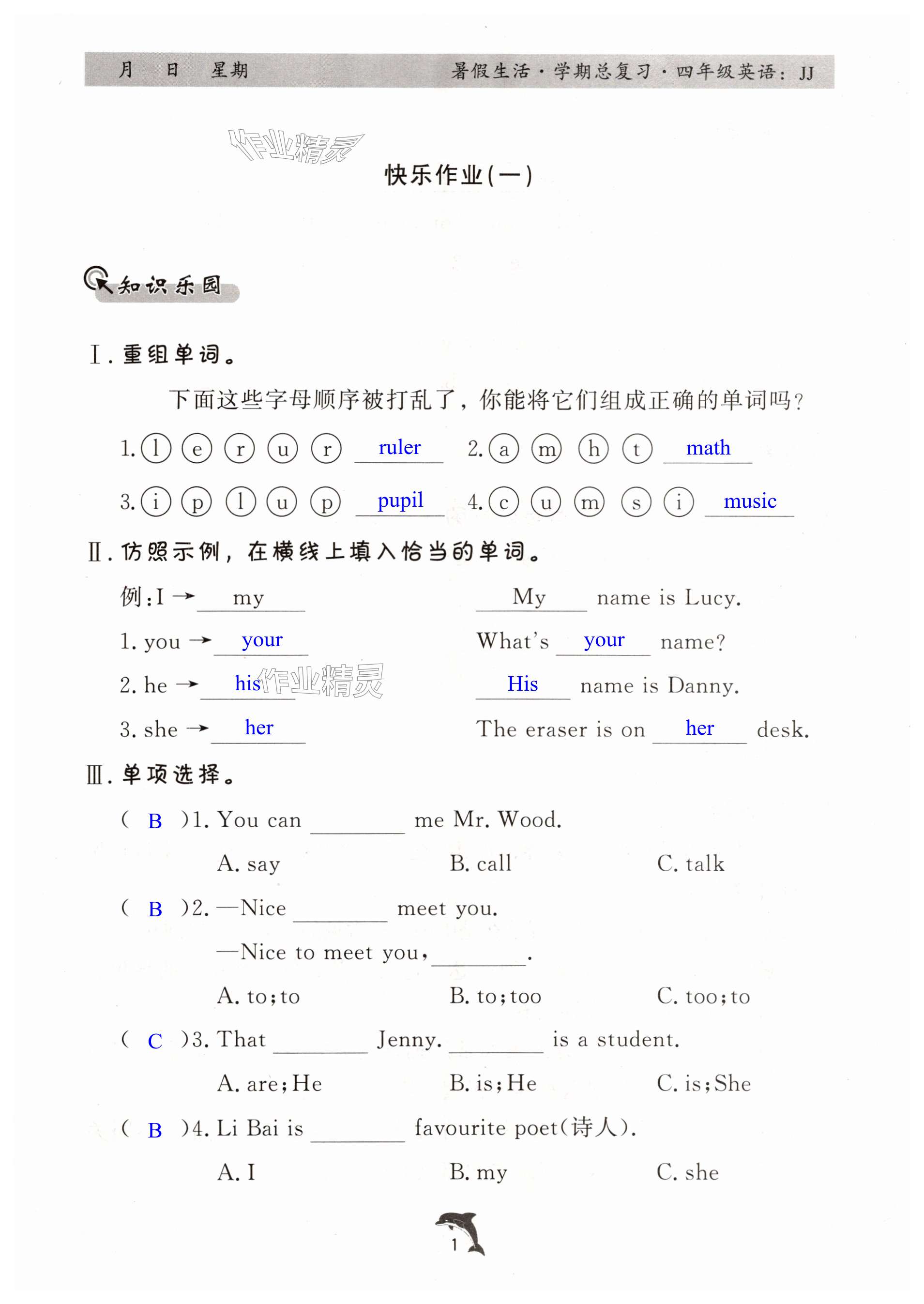 注:目前有些书本章节名称可能整理的还不是很完善,但都是按照顺序排列的,请同学们按照顺序仔细查找。练习册 2025年暑假生活学期总复习四年级英语冀教版 答案主要是用来给同学们做完题方便对答案用的,请勿直接抄袭。