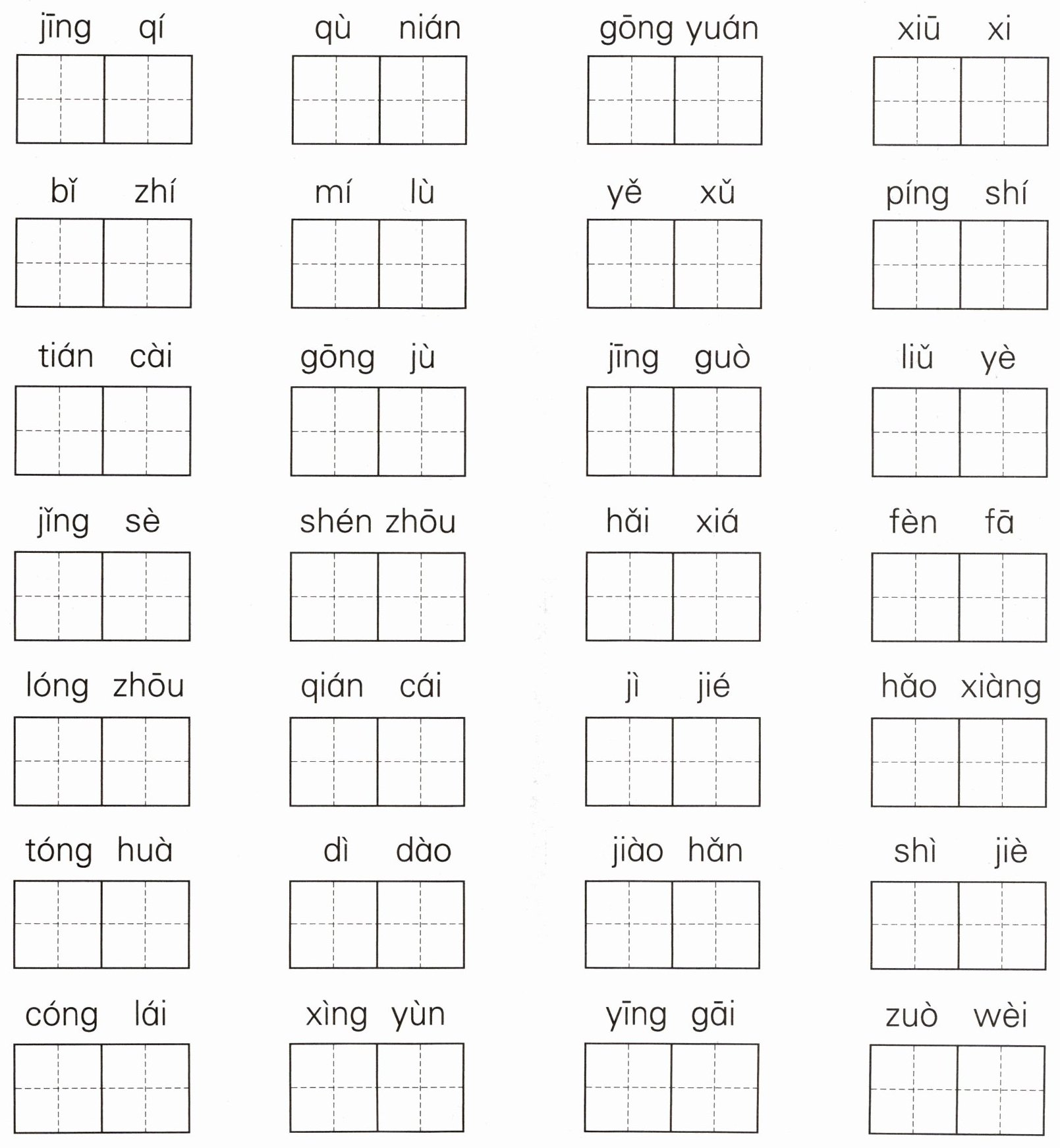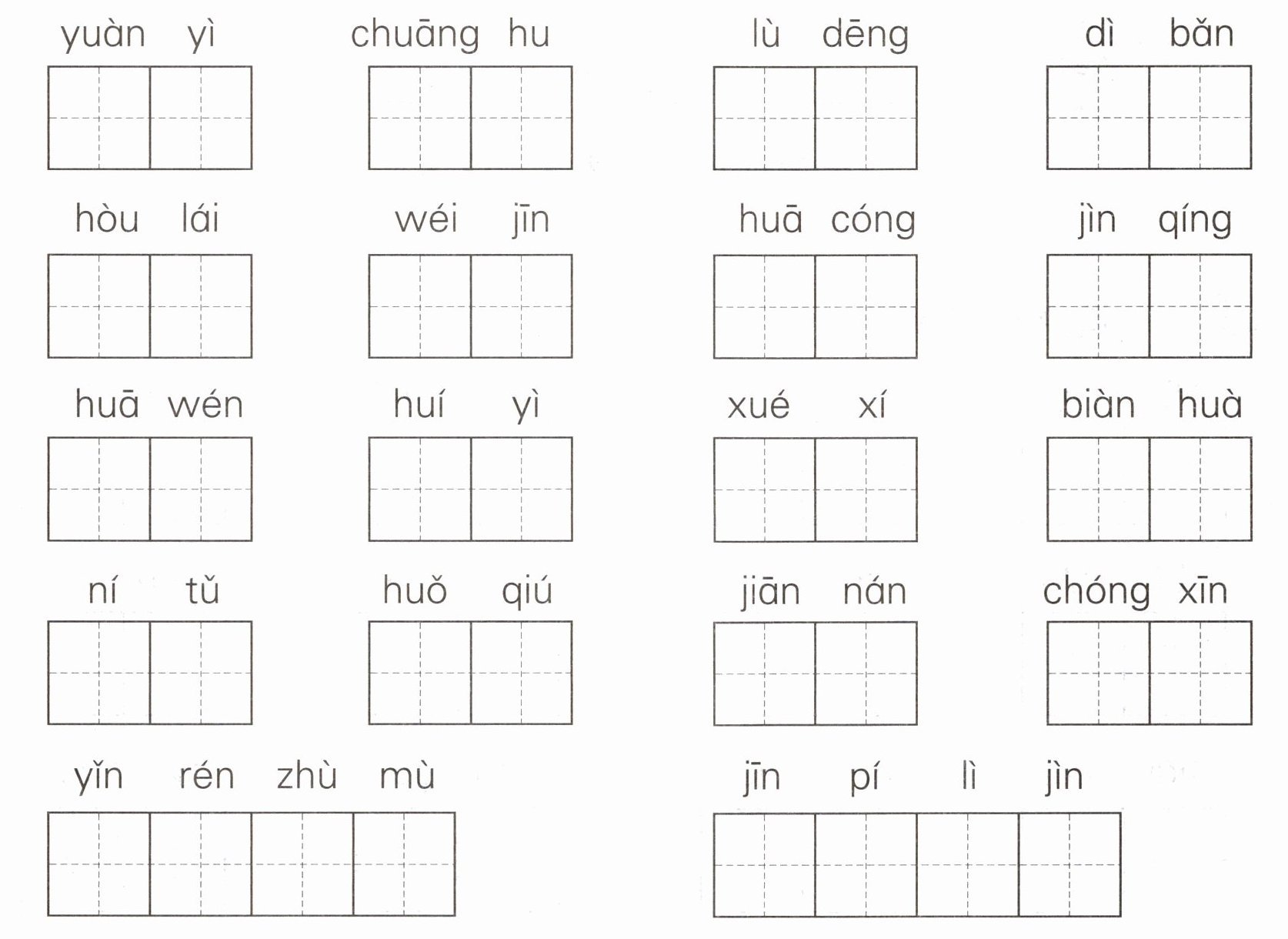 答案: 惊奇 去年 公园 休息 笔直 迷路 也许 平时 甜菜 工具 经过 柳叶 景色 神州 海峡 奋发 龙舟 钱财 季节 好像 童话 地道 叫喊 世界 从来 幸运 应该 座位 愿意 窗户 路灯 地板 后来 围巾 花丛 尽情 花纹 回忆 学习 变化 泥土 火球 艰难 重新 引人注目 筋疲力尽