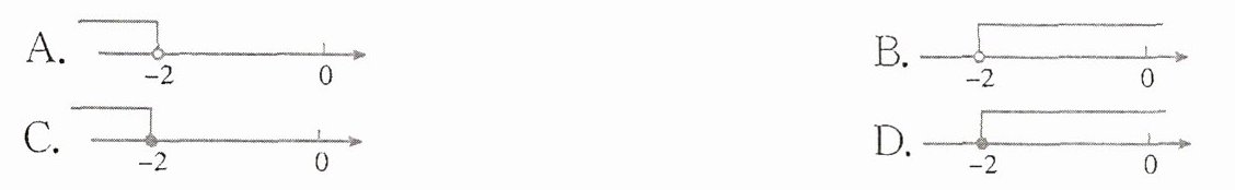 2. 若$\frac { 1 } { \sqrt { x + 2 } }$在实数范围内有意义,则$x$的取值范围在数轴上表示正确的是 (