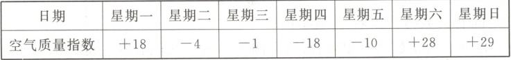 6. 空气质量指数是国际上普遍采用的定量评估空气质量好坏的重要指标,空气质量指数不超过 50 则空气质量评估为优. 下表记录了某市 11 月某一周 7 天的空气质量指数变化情况. 规定:空气质量指数为 50 记为零,空气质量指数大于 50 记为正,空气质量指数小于 50 记为负.