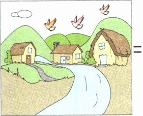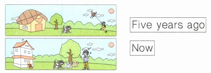 四、Lily 翻看奶奶的相册,看到一张五年前老家的照片,与现在大不相同。根据图片提示,照例子,完成句子。