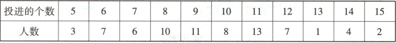 若投篮投进个数的中位数为$a$,众数为$b$,则$a + b$的值为(