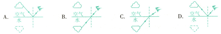 3. (大连市中山区期中) 小明在平静的湖边看到“云在水中飘”。图中关于这一现象的光路图正确的是(