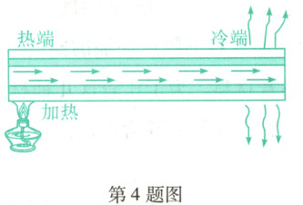 4. (沈阳市皇姑区期中) 如图, 热管是一种高效的传热装置, 广泛应用于航天、军工、交通及建筑工程等领域。其结构并不复杂, 是一根两端封闭的金属管, 吸收芯的中间充以酒精之类易汽化的液体。对此, 下列说法正确的是(
