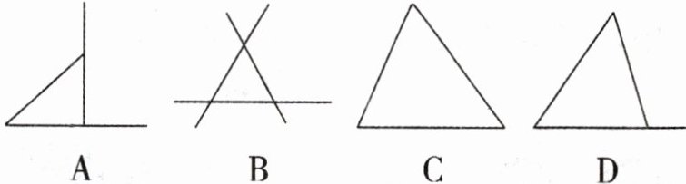 1. 一位同学用三根木棒两两相交拼成如下图形,其中符合三角形概念的是(