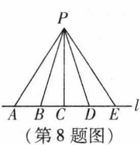 8. 如图,直线$l经过A$,$B$,$C$,$D$,$E$五点,点$P是直线l$外一点,且$PA = PE = AE$,$PB = PD$,则共有