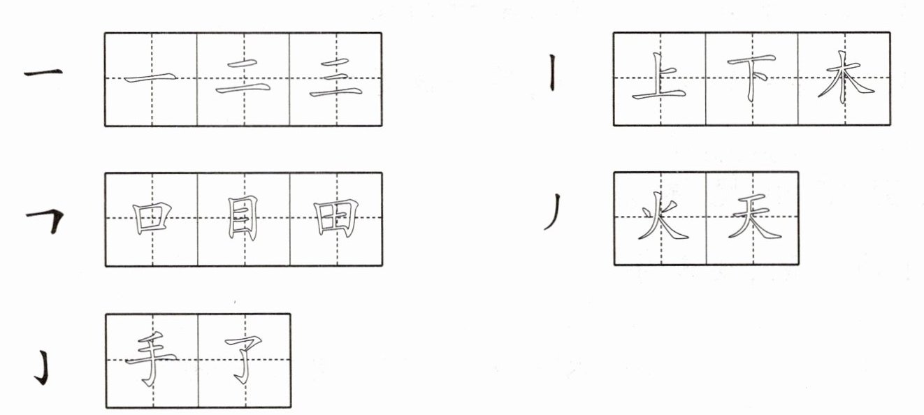 一、认笔画,在汉字中描一描。