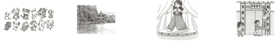 四、(海淀区)仿照范例,将下列词语与相应的主题图片建立联系。(9分)