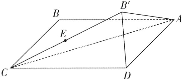 7. 在边长为4的菱形ABCD中,∠ABC = 120°。将该菱形沿对角线AC折起,得到大小为30°的二面角B' - AC - D,如图所示。若点E为B'C的中点,F为三棱锥B' - ACD表面上的动点,且总满足AC⊥EF,则点F的轨迹的长度为