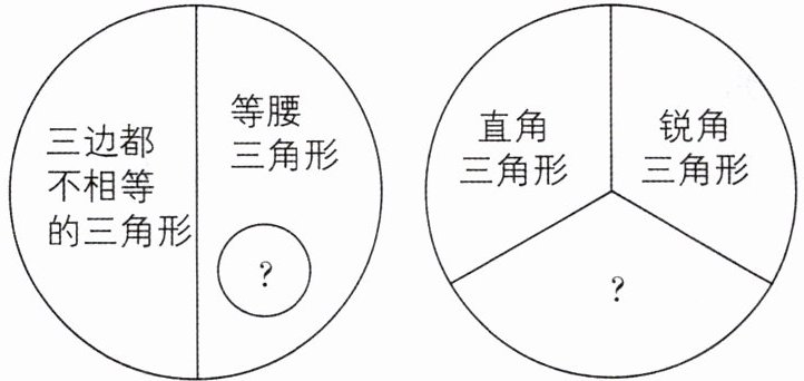 4 [2025 黑龙江哈尔滨期中]如图,将三角形分别按边的相等关系和角的大小分类,则两处“?”分别为 (