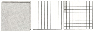 第二幅图把正方形平均分成100份,每个小正方形占1份,共有32个涂色的小正方形,占32份;2个小三角形占1份,共有20个涂色的小三角形,占10份。涂色部分共占42份。