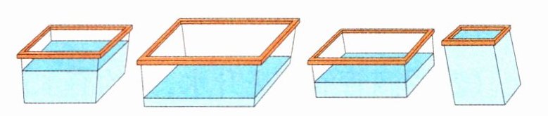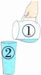 3. 将同样多的水分别倒入下面的容器中,在容量最大的容器下面画“√”,在容量最小的容器下面画“×”。