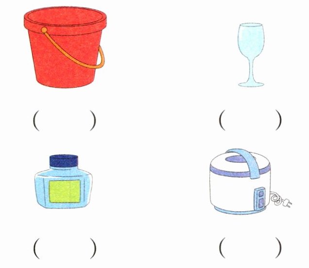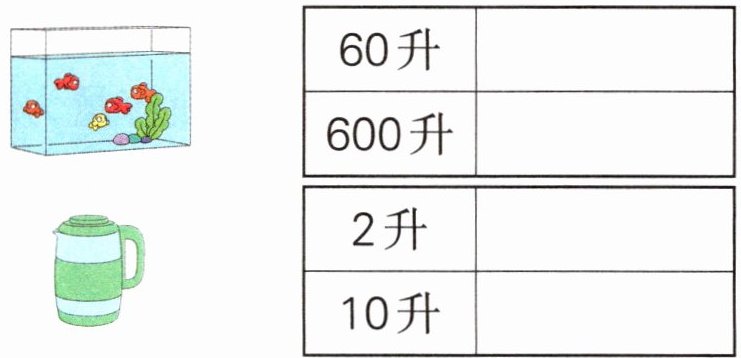 4. 下面的容器各能盛多少升水?在合适答案的右边画“√”。