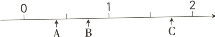 4. (名校期末真题)如图,箭头( )所指的位置,距离$\frac{3}{10}+\frac{9}{20}$的结果最近。