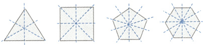 如果平面图形的每条边都相等,那么对称轴条数和多边形边数相等。
