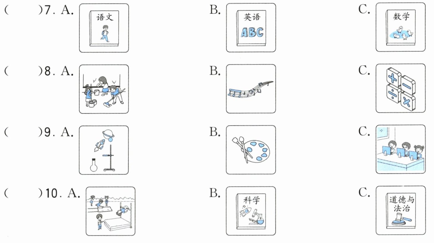 三 听录音,判断所听内容与图意是否相符,相符的写“T”,不相符的写“F”。(听两遍,5 分)