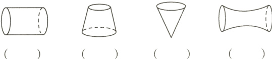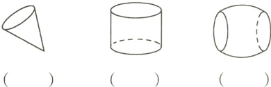1. 下面图形哪些是圆柱,哪些是圆锥?是圆柱的在括号内画“√”,是圆锥的在括号内画“○”。
