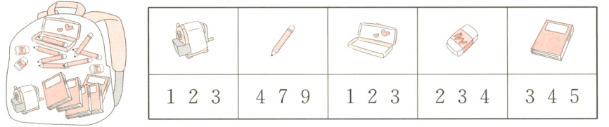 4. 我会整理书包。(数一数,圈出正确的数)(5分)