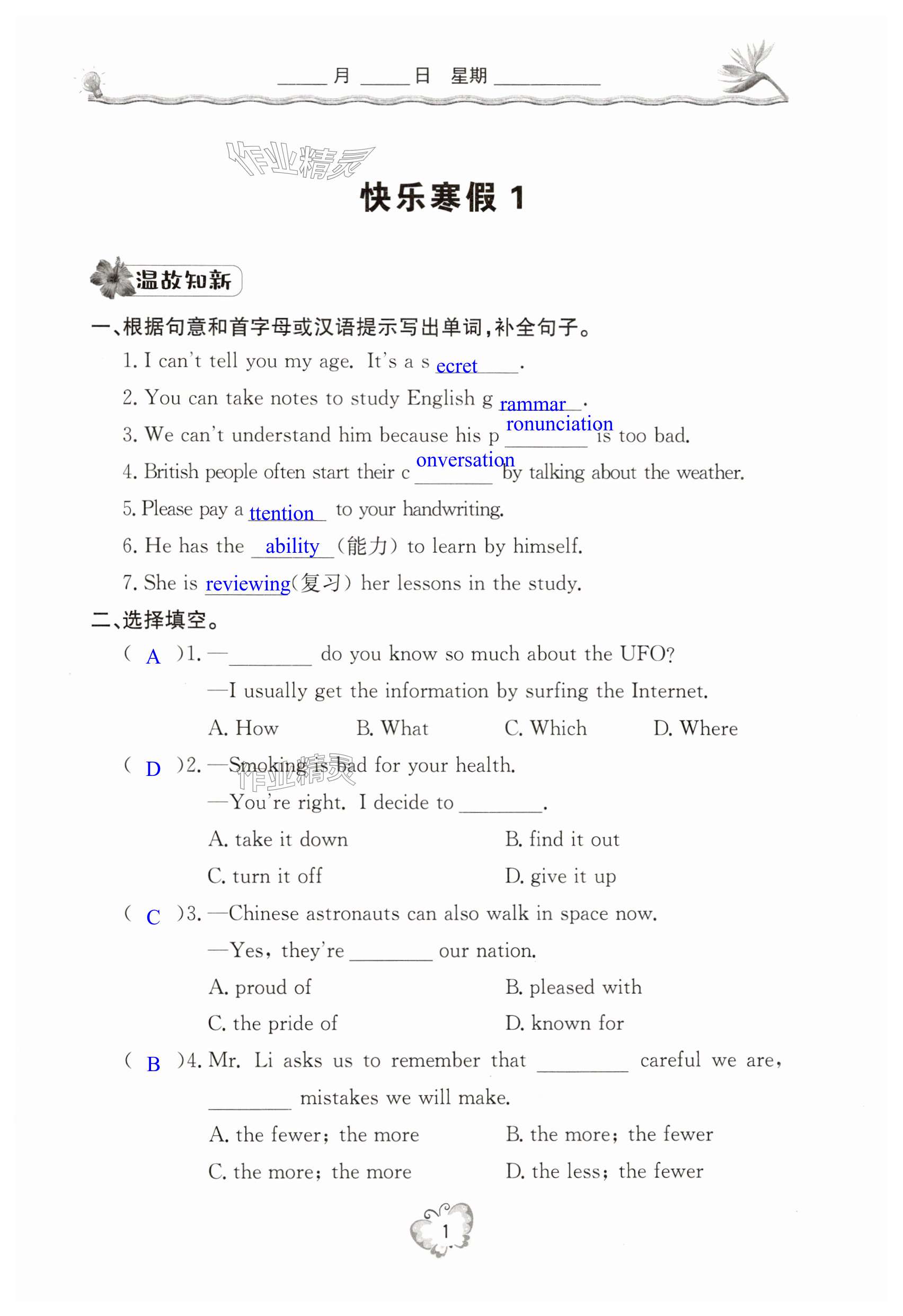 注:目前有些书本章节名称可能整理的还不是很完善,但都是按照顺序排列的,请同学们按照顺序仔细查找。练习册 2025年新课堂寒假生活九年级英语人教版 答案主要是用来给同学们做完题方便对答案用的,请勿直接抄袭。