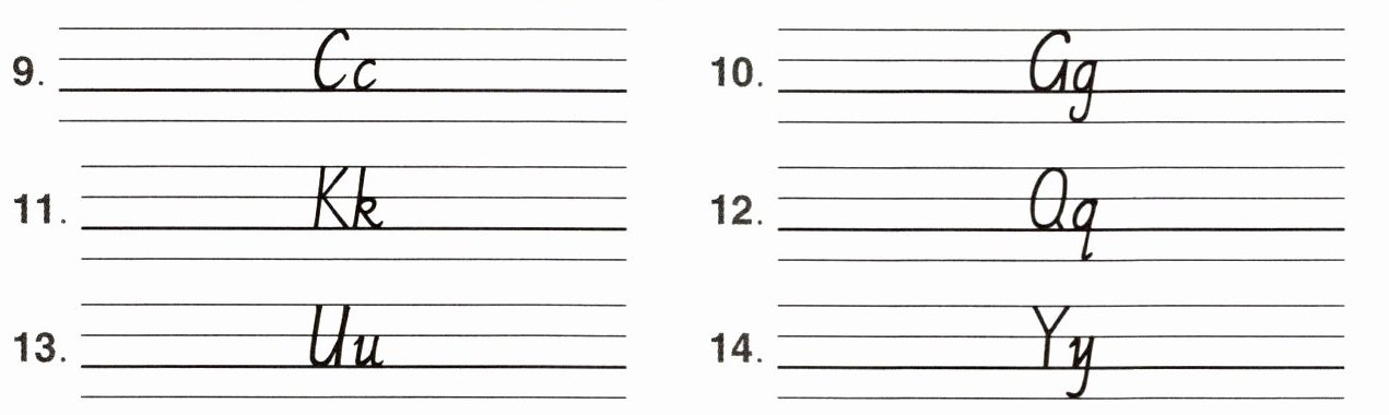 1. Aa 2. Ee 3. Ii 4. Mm 5. Nn 6. Oo 7. Ss 8. Ww