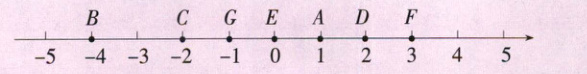 (6)数轴上标出的这几个点表示的数的绝对值最大的是点,它表示的数的倒数是