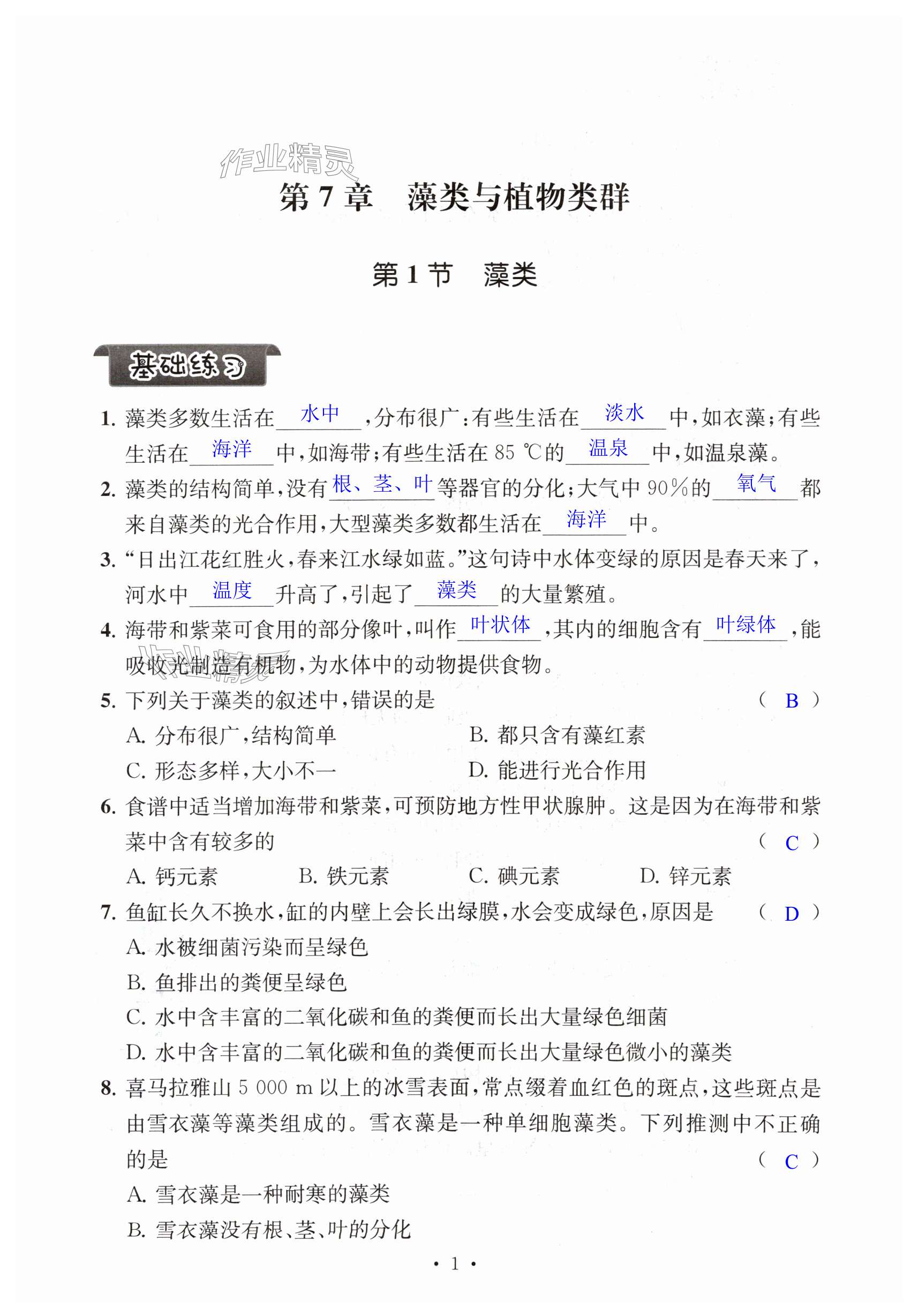 注:目前有些书本章节名称可能整理的还不是很完善,但都是按照顺序排列的,请同学们按照顺序仔细查找。练习册 2025年全优悦读本七年级生物下册苏科版 答案主要是用来给同学们做完题方便对答案用的,请勿直接抄袭。
