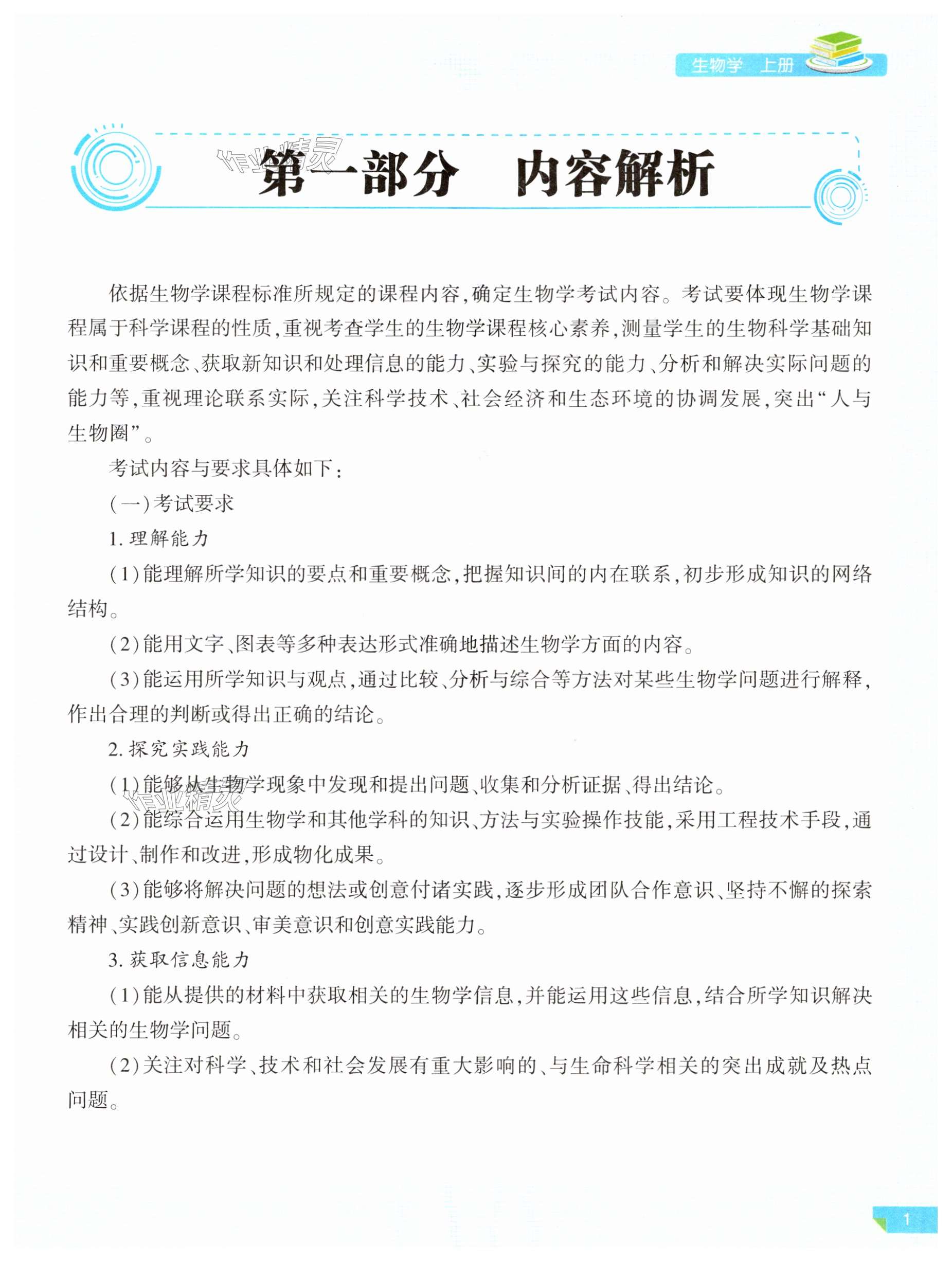 注:目前有些书本章节名称可能整理的还不是很完善,但都是按照顺序排列的,请同学们按照顺序仔细查找。练习册 2024年河南省初中学业水平考试解析与检测生物上册 答案主要是用来给同学们做完题方便对答案用的,请勿直接抄袭。