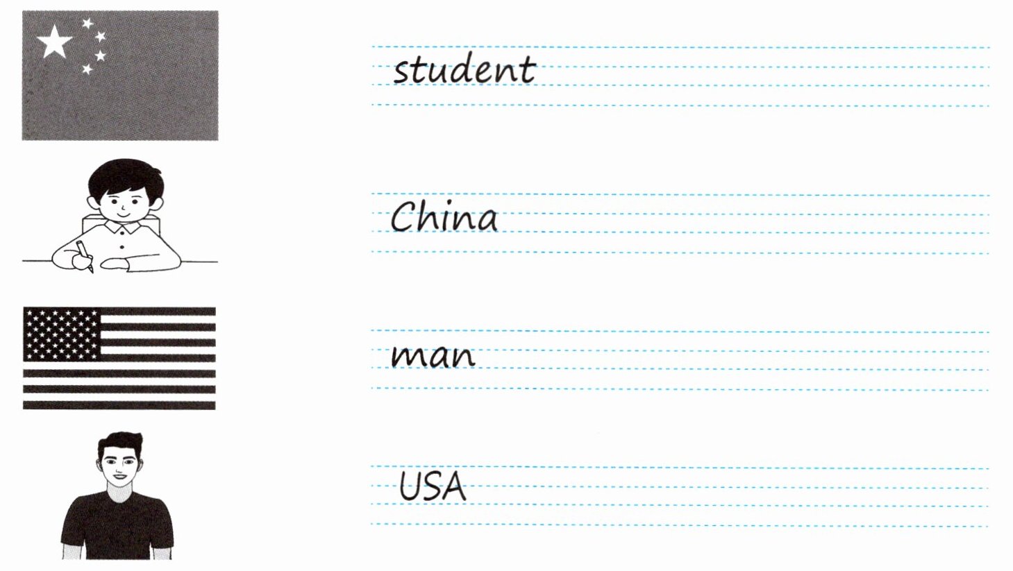 一、将图片与对应单词连线,并在四线三格中抄写单词。