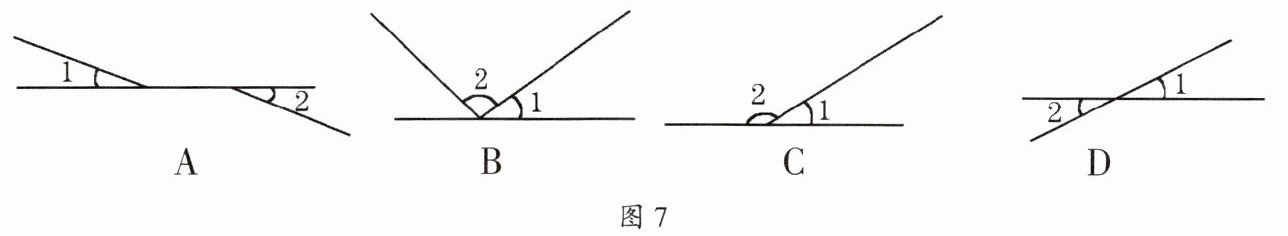 1. 如图 7,$∠1与∠2$为对顶角的是()