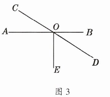 3. 如图 3,$AB$、$CD相交于点O$,$∠AOE = 90^{\circ}$,则$∠AOC与∠BOD$是 ,$∠AOC和∠DOE$是 。