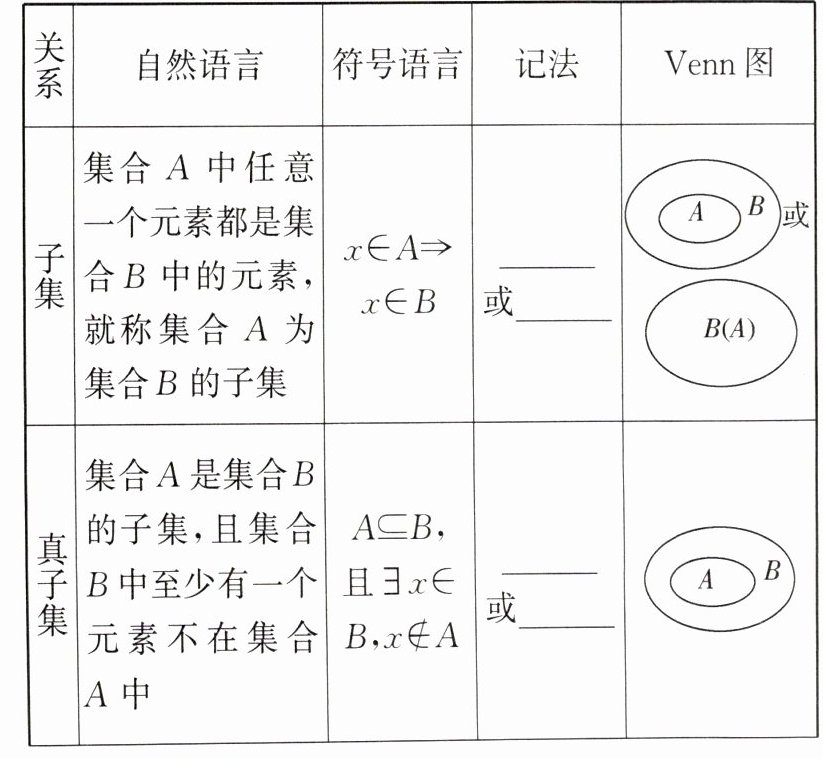 答案: $A\subseteq B$@@$B\supseteq A$    $A\subsetneqq B$@@$B\supsetneqq A$