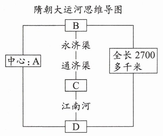 3. 隋朝大运河全长 2700 多千米,是当时世界上最长的运河。右图中字母代号对应信息正确的一项是(