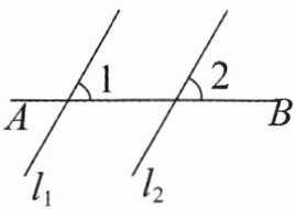 4. 如图,将直线$l_{1}$沿着 AB 的方向平移得到直线$l_{2}$,若$∠1= 50^{\circ }$,则$∠2$的度数是()