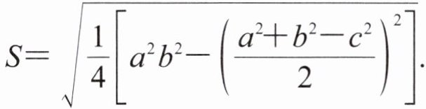 【问题反思】我国数学家秦九韶提出的“秦九韶公式”,虽然在形式上与海伦公式不同,但其实与海伦公式等价,我们可以尝试由“秦九韶公式”推导“海伦公式”.